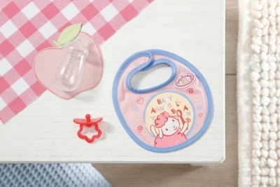 Das Baby Annabell Little Fütterset von Zapf Creation hilft Puppeneltern dabei, sich hingebungsvoll um Baby Annabell Little zu kümmern. Im Set enthalten sind ein Fläschchen, ein Schnuller mit blumenförmigem Griff und ein Lätzchen mit fröhlichen Motiven.