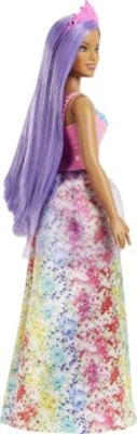 Barbie liebt Farben! Mit dieser bezaubernden „Barbie Dreamtopia Prinzessinnen-Puppe (kurvig, brünettes Haar“ von Mattel können wundervoll-königliche Geschichten und Abenteuern erfunden werden. Die bezaubernde Barbie-Prinzessin mit den langen Haaren lädt zum kreativen Spielen und Stylen ein und trägt ein bezauberndes Oberteil und passend dazu einen Prinzessinnen-Rock mit fröhlichem Print und Tüll-Applikation. Die langen Haare, die passenden Schuhe und das majestätische Diadem laden zum Umsetzen kreativer Styling-Ideen ein und sorgen für unendlichen Spielespaß in der Welt der Prinzessinnen.