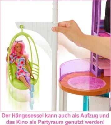 In nur wenigen Schritten aufgeklappt! Das Malibu Ferienhaus von Mattel ist in Nullkommanichts aufgebaut und entfaltet so eine Menge Möglichkeiten zum Spielen. Hier können es sich die Barbiepuppen so richtig gut gehen lassen und die vielen Tools und das Zubehör entdecken. Auf zwei Etagen befindet sich eine Küche und ein Wohnzimmer, sowie Schlafzimmer und Bad. Egal ob ein gemeinsamer Bruch mit Freund*inneenm ein gemütlicher Fernsehabend mit Shelly auf der Couch oder auch eine erste Session auf der neuen Schaukel. Kinder können das geräumige und liebevoll gestaltete haus entdecken und sich bei allem ausprobieren.