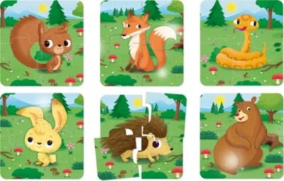Das Carotina Baby Puzzle Set Der Wald besteht aus sechs Puzzles für die ganz Kleinen. Die Puzzles mit hübschen Waldmotiven bestehen jeweils aus vier Teilen.