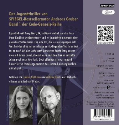 Der grandiose Jugendthriller von SPIEGEL-Bestsellerautor Andreas GruberEigentlich will Terry West, 14, in Miami einfach nur das Haus ihrer Kindheit wiedersehen – und ist im nächsten Moment eine gesuchte Verbrecherin. Für eine Tat, die sie nie begangen hat! Was hat das alles mit dem lange zurückliegenden Tod ihrer Mutter zu tun? Auf der Suche nach Antworten bricht Terry zusammen mit ihrem Onkel, ihrem Cousin und dem treuen Sekretär Johann auf nach New York. Doch offenbar ist noch jemand hinter Terrys Familiengeheimnis her. Jemand, der unglaublich mächtig ist …Gelesen von Jodie Ahlborn und Achim Buch, der Hörbuchstimme von Andreas Gruber.(1 mp3-CD, Laufzeit: ca. 7h 30)Gruber, AndreasAndreas Gruber, 1968 in Wien geboren, lebt als freier Autor mit seiner Familie in Grillenberg in Niederösterreich. Mit seinen bereits mehrfach preisgekrönten Romanen steht er regelmäßig auf der Bestellerliste.Buch, AchimAchim Buch absolvierte seine Schauspielausbildung an der Folkwangschule in Essen, danach war er Ensemblemitglied am Hessischen Staatstheater in Wiesbaden, Engagements in Mannheim, Frankfurt und Freiburg folgten. Von 1997 bis 2000 gehörte er dem Ensemble des Thalia Theaters in Hamburg an, danach fünf Jahre lang dem Freiburger Schauspiel. Von 2005 bis 2013 war er Ensemblemitglied am Deutschen SchauSpielHaus Hamburg. Neben seiner Tätigkeit bei Funk, Film und Fernsehen gastierte er u. a. auch bei den Wiener Festwochen, den Ruhrfestspielen Recklinghausen, an den Staatstheatern Stuttgart und Dresden, am Residenztheater München sowie an den Schauspielhäusern Bochum und Düsseldorf. Im Hörverlag ist er die feste Stimme von Andreas Gruber.Ahlborn, JodieJodie Ahlborn wurde 1980 in Hamburg geboren und absolvierte ihre Ausbildung an der Schule für Schauspiel Hamburg. Seitdem wirkte sie in Film-und Fernsehproduktionen mit, darunter die „Lindenstraße“, und hat bereits zahlreiche Hörbücher gelesen. Als Sprecherin wurde sie unter anderem 2013 für den Deutschen Kinderhörbuchpreis BEO und 2014 für den HÖRkulino Publikumspreis des Buchhandels nominiert.