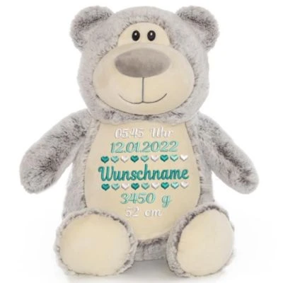 • Die personalisierte Stickerei erfolgt auf den Bauch des Bären und macht das Kuscheltier zum Unikat