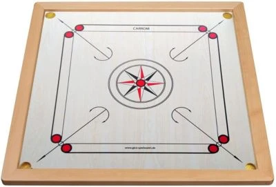 CARROM BOARD: Bei unserem eigenentwickelten Carrom Board Excellence Pro ist der Name Programm. Hochwertige, solide Verarbeitung zeichnen unser Spiel aus. Maße: 84×84, breitem Massivholzrahmen und 13 mm MDF Spielflaeche für optimales Gleiten der Spielsteine