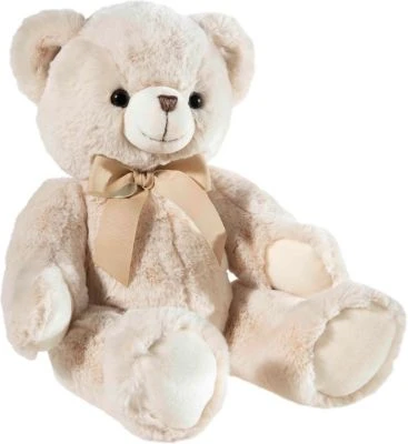 Dieser süße Bär mit großer Schleife setzt durch seine klassische Optik einen echten Retroakzent im Kinderzimmer. Er ist außerdem ein weicher, sehr treuer Begleiter fürs Kind.