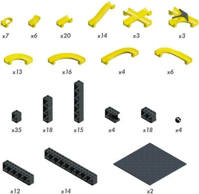 Das Starter Set besteht aus 214 modularen bauteilen und ist der ideale Einstieg in das Hubelino pi Kugelbahnsystem. Entwickle mit dem Baukasten Action-reiche Kugelbahn-Konstruktionen und lerne die Gesetze der Physik zu bändigen. Das Kugelbahn Starter Set ist kompatibel mit Bausteinen anderer Hersteller und kann mit anderen Hubelino pi Sets unendlich erweitert werden – für spektakulären Konstruktions Spaß.