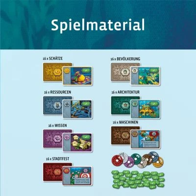 Die versunkene Stadt PACIFICA erwacht wieder zum Leben! Zwei Spieler*innen überlegen sich, wie ihre Stadt in Zukunft aussehen soll. Dafür sammeln sie Kunstschätze, errichten Wege und treiben Erfindungen voran. Wer in einer Disziplin die Überhand gewinnt, erhält ein Idol. Wem gelingt es, den Aufbau der Unterwasser-Stadt so schnell wie möglich voranzubringen? Wer hat die richtige Strategie und ein bisschen Glück?