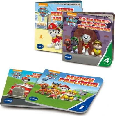 Zusammen mit Marshall spannende Geschichten lesen! Der plüschige Marshall liest vier PAW Patrol Abenteuergeschichten vor und ermutigt das Kind zum eigenständigen Lesen.