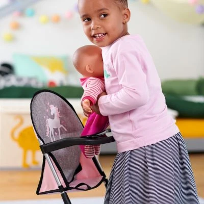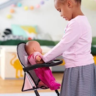 In diesem Puppenhochstuhl aus der myToys-COLLECTION von Bayer kann die Lieblingspuppe bequem gefüttert werden. Hier hat sie einen sicheren Platz und kann dank des Tabletts sogar selbstständig essen. Passend zum Hochstuhl ist auch eine Umhängetasche enthalten, in der Puppeneltern die wichtigsten Utensilien verstauen können.