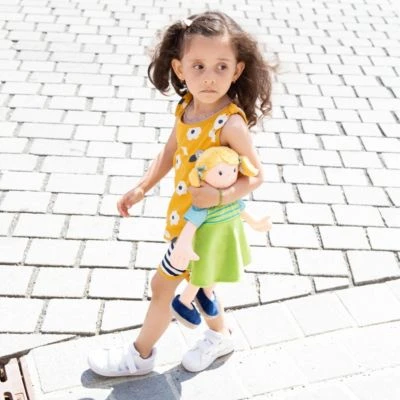 Die Puppe Quendy von sigikid begleitet Kinder durch Dick und Dünn. Mit ihr kann man toll spielen und sie ist überall gern dabei. Ebenso ist sie eine tolle Trösterin und schmust gerne. Die Anziehpuppe trägt ein Kleid und ein T-Shirt, allerdings kann diese Kleidung nach Belieben ausgewechselt werden, wodurch die Puppeneltern gleich auch ihre motorischen Fähigkeiten trainieren.