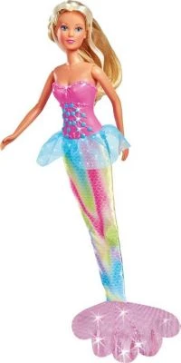 Steffi Love aus diesem Simba „Dream Set“ ist nicht nur eine wunderschöne Prinzessin; schließlich kann sie sich im Handumdrehen auch in eine zauberhafte Fee oder Meerjungfrau verwandeln. Das Set besteht aus einer Modepuppe im wunderschönen Kleid mit Diadem, einer schimmernden Schwanzflosse sowie Feenflügel.