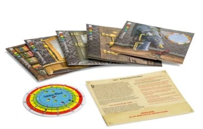 Inhalt: Szenariokarten, 5 versiegelte Umschläge mit geheimen Gegenständen, 1 Lösungsrad