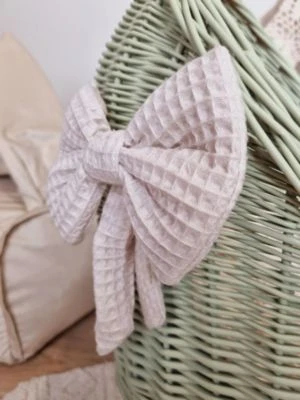 Farbe: Grün/Natur, mit einem beige farbigen Bettwäscheset (Kissen und Decke) und Stoffschleife