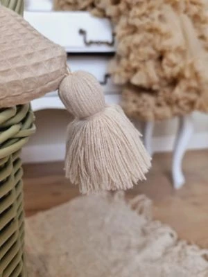 Die Steppdecke wird mit zwei Quasten verwöhnt, während das Kissen mit einer zarten Rüsche veredelt wird.