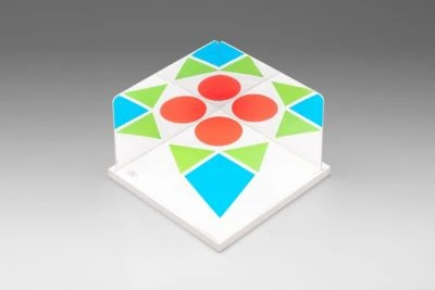 Satz bestehend aus einem Ständer (16 x 16 x 1cm) aus Kunststoff mit 2 Schlitzen, in denen die beiden Spiegel (ca. 15 x 10 x 0,15cm) eingesteckt werden können.